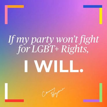 Given the vacuum that now exists in defending all LGBT+ people within the party, I will fill the void and speak up for LGBT+ people and promote the advancement or rights and stand against the regression. But it takes more than one person to make a change in society, it takes a team - we can only do this united! If others in my party stand by and let it happen, I make this promise, I will not. I pledge to be loud, to be relentless in my pursuit of justice and to be unyielding - not giving a single inch when it comes to LGBT+ rights. But one person can’t do it alone, it requires all of us, together to fight, fight and fight even more.